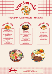 THỰC ĐƠN TUẦN THÁNG 10 NĂM 2025 – TRƯỜNG THCS – THPT NEWTON
